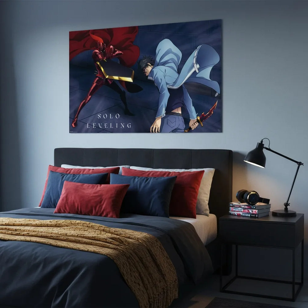 An electrifying face‑off from Solo Leveling! Watch as Sung Jinwoo squares up against the valiant Igris, the heroic Red Knight, in a duel that marks a turning point in Jinwoo’s rise. This is more than just a poster—it captures the clash of power, honour, and respect that defines one of the most memorable battles in the series. Bring that epic energy into your space with this official GB Eye maxi poster.